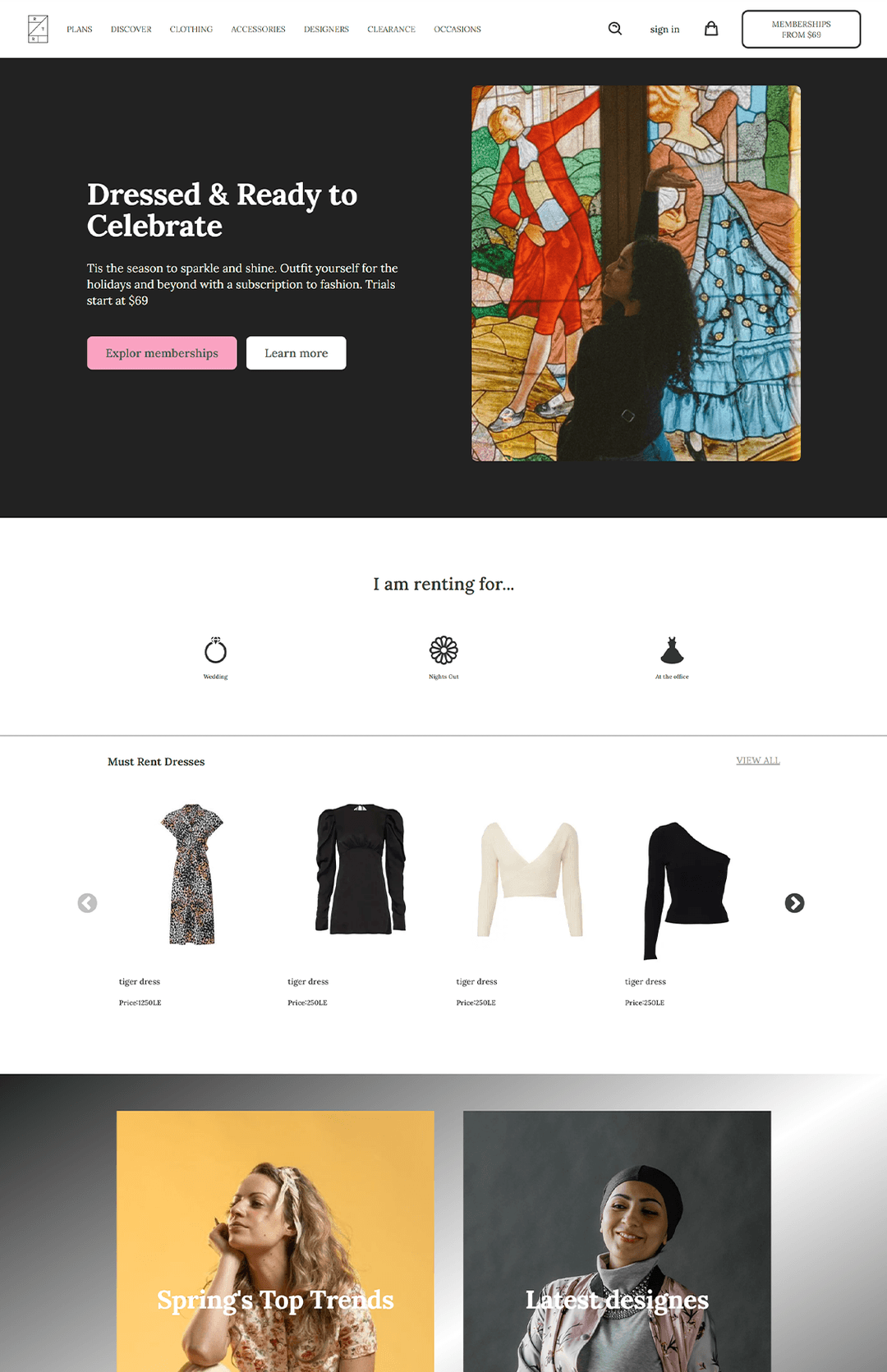 Visit websitewe were responsible for designing and developing the front-end of the E-Dress website, which provides an online platform for renting dresses. Our primary goals were to create an elegant and user-friendly interface that would showcase the products and facilitate easy navigation for users. We faced a challenge in accommodating the client's request to showcase the dresses in as many ways as possible. To address this, we implemented features such as zooming in on the clothes to see materials and a product showcase when hovering over any picture. Ultimately, we delivered a website that effectively conveys the E-Dress brand and provides a seamless experience for users to browse, rent, and purchase dresses online. The final result was a visually stunning and highly functional website that meets the client's objectives and meets the needs of their target audience.